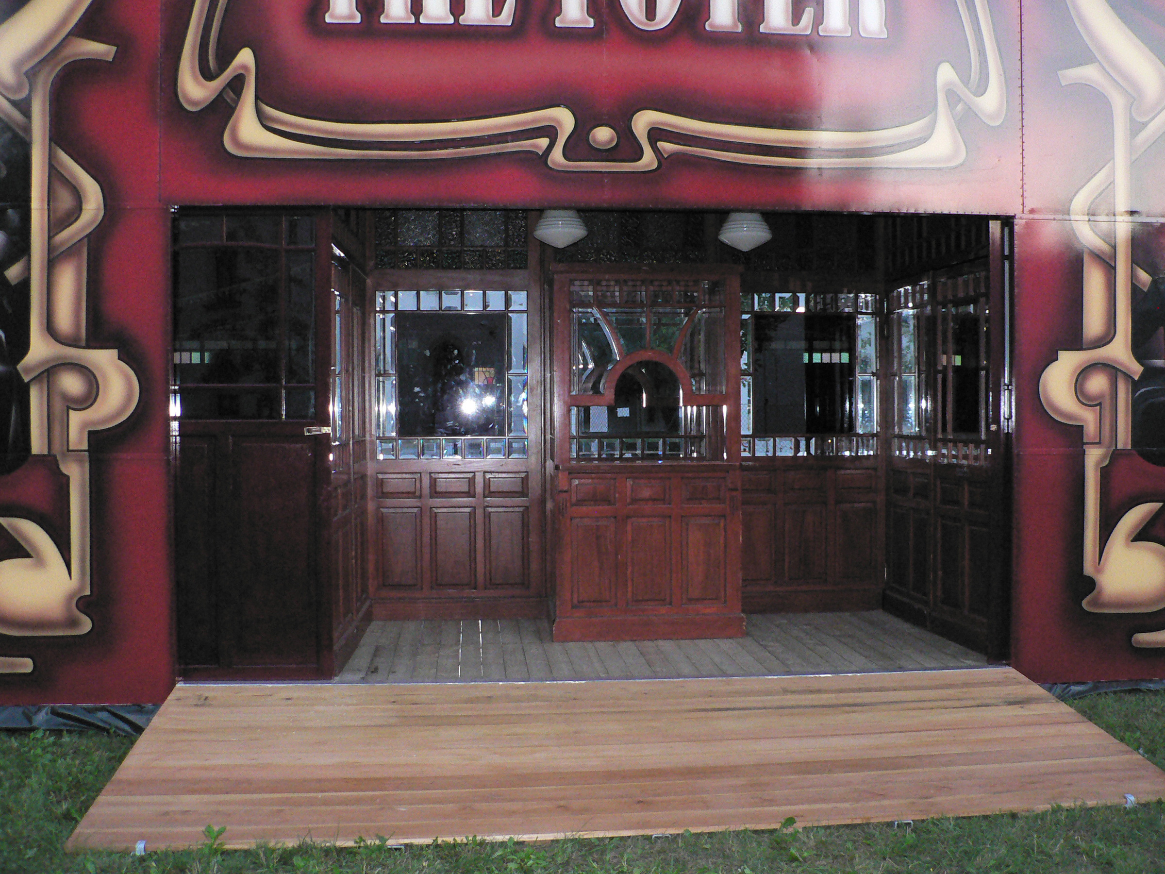 Prachtige façade, mooie entree met klapdeuren, ramen met gekleurd glas, plafond en wanden bekleed met Red Velvet.